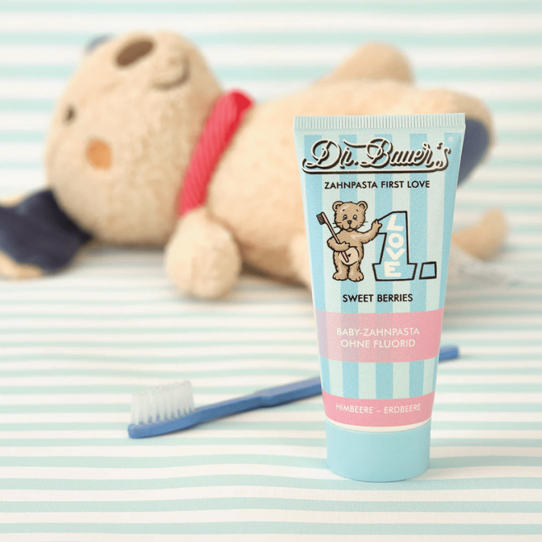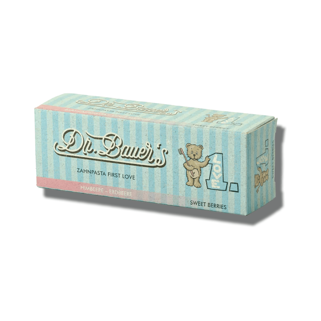 Dr. Bauer’s First Love dantų pasta – tai meilė Jūsų vaikams nuo pirmojo dantuko. Ramunėlės, hialurono rūgštis ir ksilitolis ypač švelniai rūpinasi vaikų dantukais bei  suteikia vaisių-uogų skonį. Maža tūbelės anga padeda tiksliai dozuoti dantų pastos kiekį.