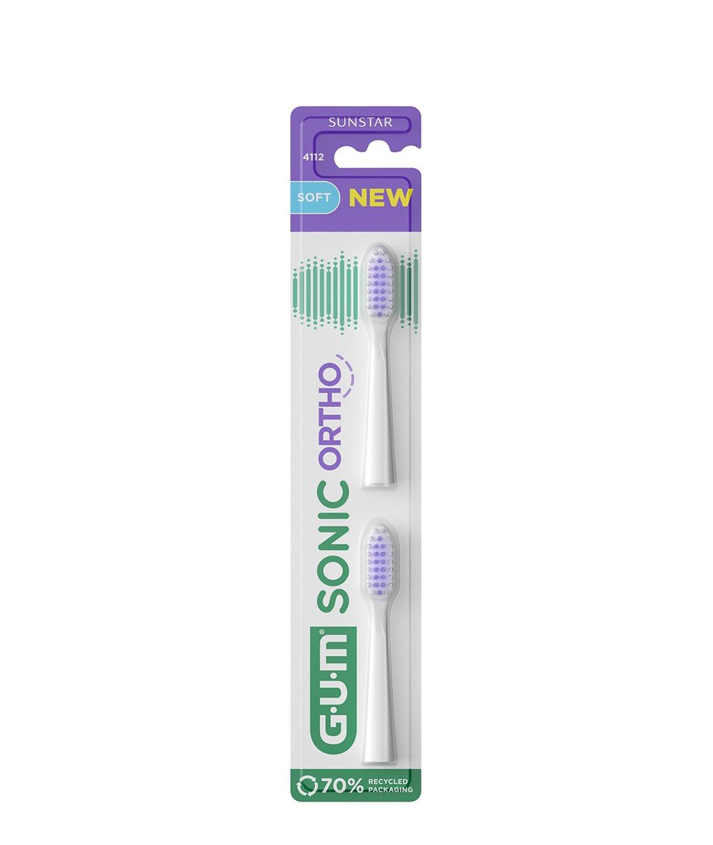 GUM® SONIC ORTHO dantų šepetėlio keičiamos galvutės sukurtos specialiai dar geresnei breketų priežiūrai. Itin giliai valantys dviejų lygių šereliai.