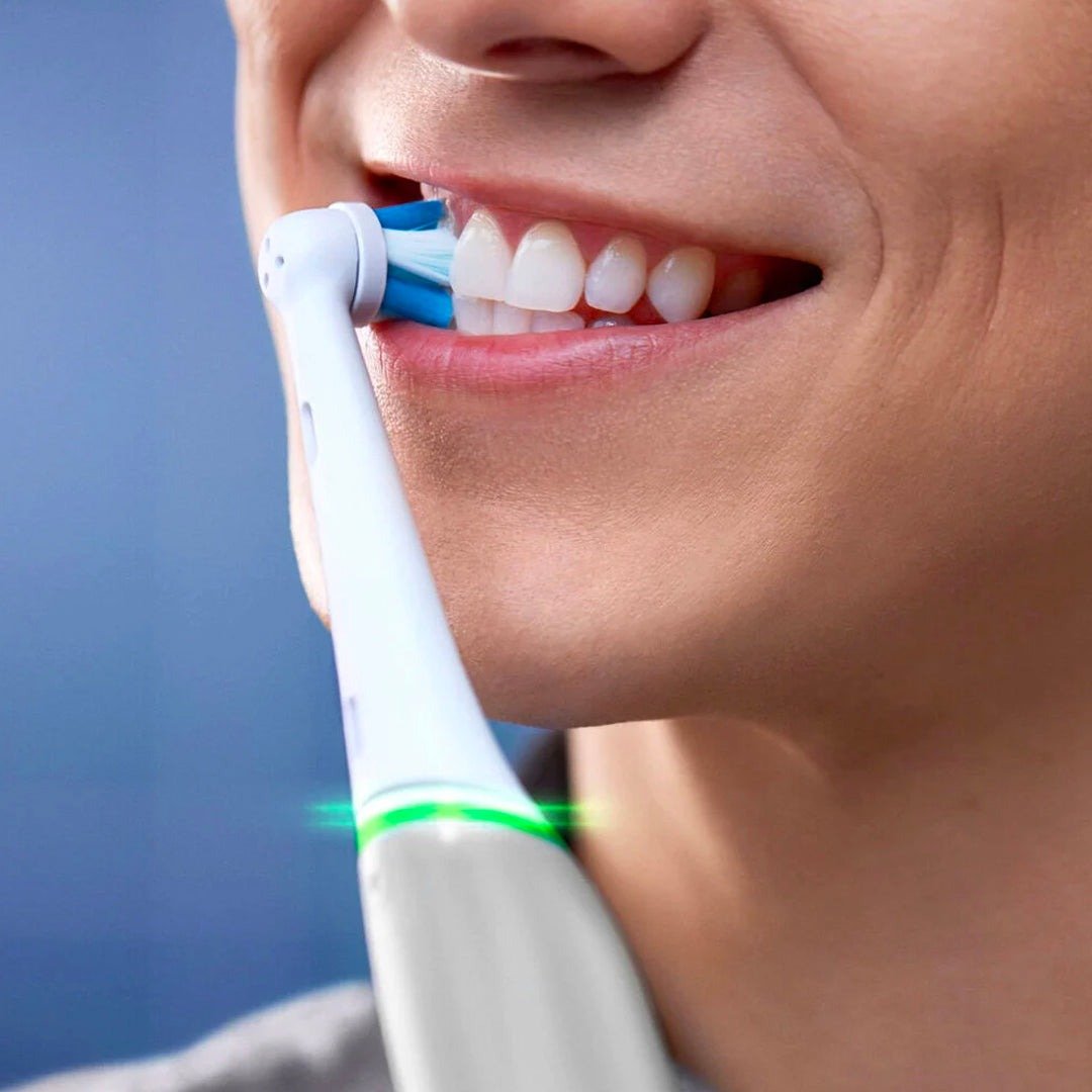 – „ i O™“ – tai geriausia „Oral-B“ valymo technologija, kuri sujungia unikalią apvalią šepetėlio galvutę su švelniomis mikrovibracijomis, o naujoviška tiesinė magnetinė pavara sutelkia energiją būtent ten, kur jos labiausiai reikia – ties šerelių galiukais. Gaivus švaros pojūtis ir 100% sveikesnės dantenos vos per vieną savaitę.