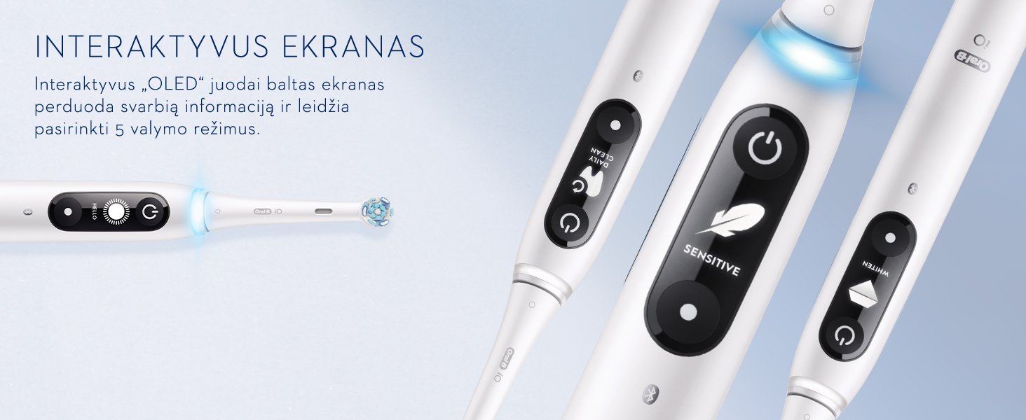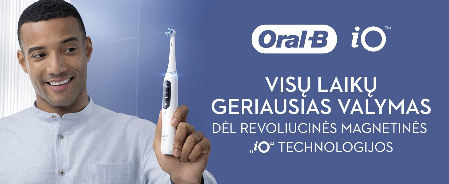– „ i O™“ – tai geriausia „Oral-B“ valymo technologija, kuri sujungia unikalią apvalią šepetėlio galvutę su švelniomis mikrovibracijomis, o naujoviška tiesinė magnetinė pavara sutelkia energiją būtent ten, kur jos labiausiai reikia – ties šerelių galiukais. Gaivus švaros pojūtis ir 100% sveikesnės dantenos vos per vieną savaitę.