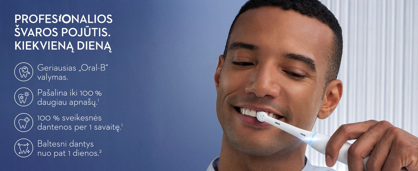 „Oral-B“ GERIAUSIAS VALYMAS su REVOLIUCINE MAGNETINE „ i O™“ TECHNOLOGIJA – PROFESIONALIOS ŠVAROS POJŪČIUI IR ŠVELNIAM VALYMUI KIEKVIENĄ DIENĄ.